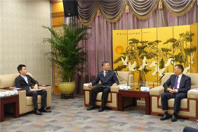廣安市委書(shū)記李建勤(右一)會(huì)見(jiàn)彭國(guó)遠(yuǎn)董事長(zhǎng)(左一)