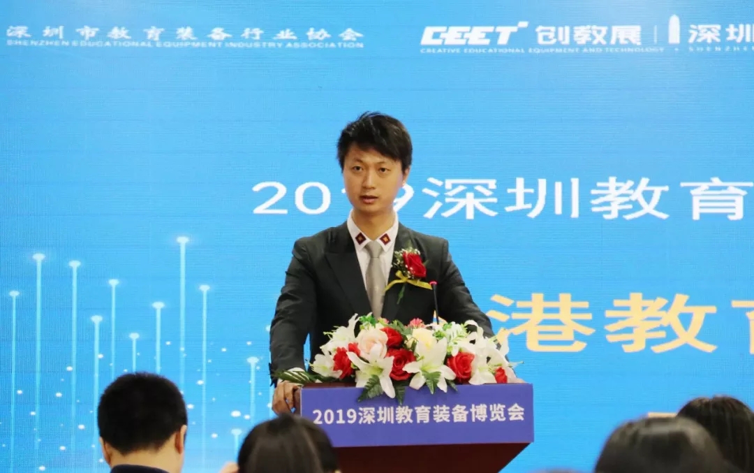 香港教育裝備行業(yè)協(xié)會(huì)會(huì)長(zhǎng)尹繼賢親臨現(xiàn)場(chǎng)并致賀詞