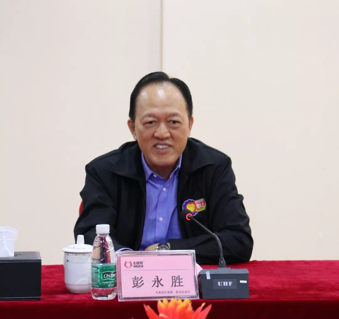 6月3日,馬來(lái)西亞拿督、彭氏總會(huì)長(zhǎng)彭永勝,馬來(lái)西亞彭氏總會(huì)秘書(shū)長(zhǎng)彭錦洸博士,公關(guān)主任彭圣賢等領(lǐng)導(dǎo)蒞臨心里程集團(tuán)總部考察。心里程控股集團(tuán)總裁彭錦環(huán)熱情接待并座談。