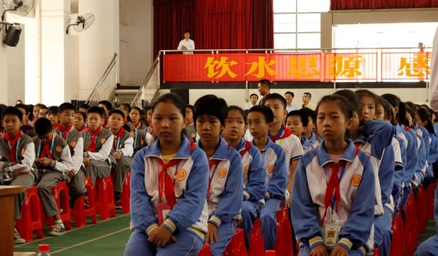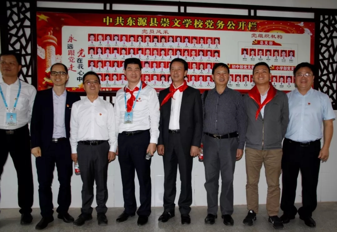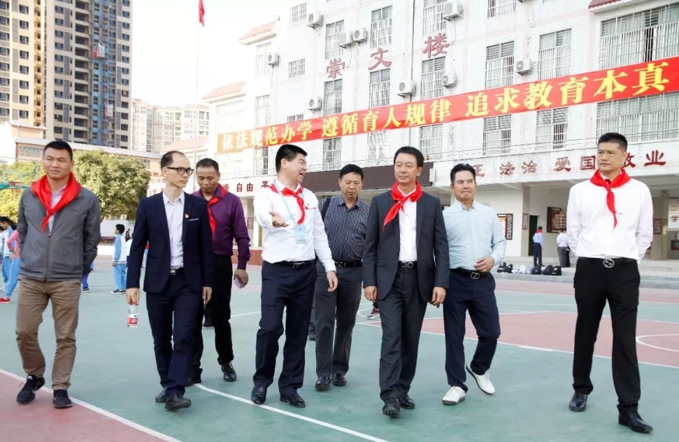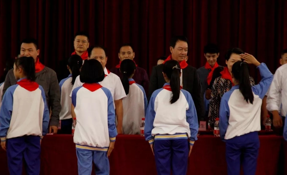 東源縣崇文學(xué)校學(xué)生為企業(yè)代表佩戴紅領(lǐng)巾