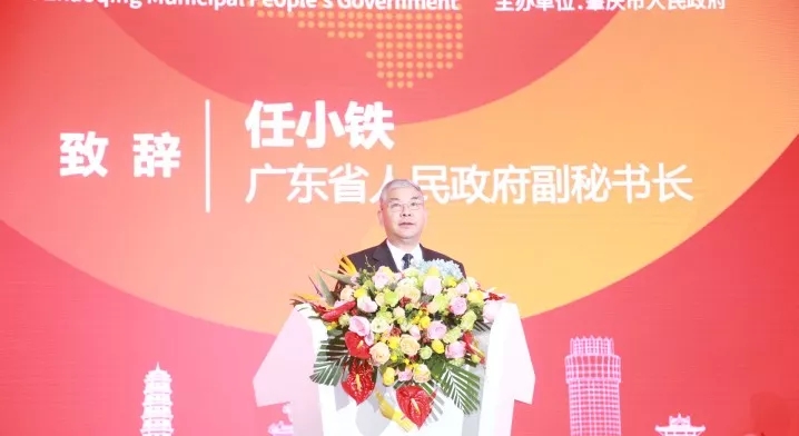 廣東省人民政府副秘書長任小鐵致辭。他表示,“肇慶金秋”作為展示肇慶發(fā)展成果的重要平臺,不僅是肇慶推介投資的窗口,也是企業(yè)尋求合作的橋梁,更是有識之士交流思想的重要平臺。希望肇慶繼續(xù)全面深化與大灣區(qū)各城市的互利合作,加快推動高質(zhì)量發(fā)展。歡迎廣大客商投資大灣區(qū),投資廣東,投資肇慶,成為粵港澳大灣區(qū)高質(zhì)量發(fā)展的見證者、參與者、受益者。省政府將一如既往關(guān)心、支持肇慶全方位參與粵港澳大灣區(qū)建設(shè),支持各位商界精英選擇肇慶、投資肇慶、扎根肇慶。