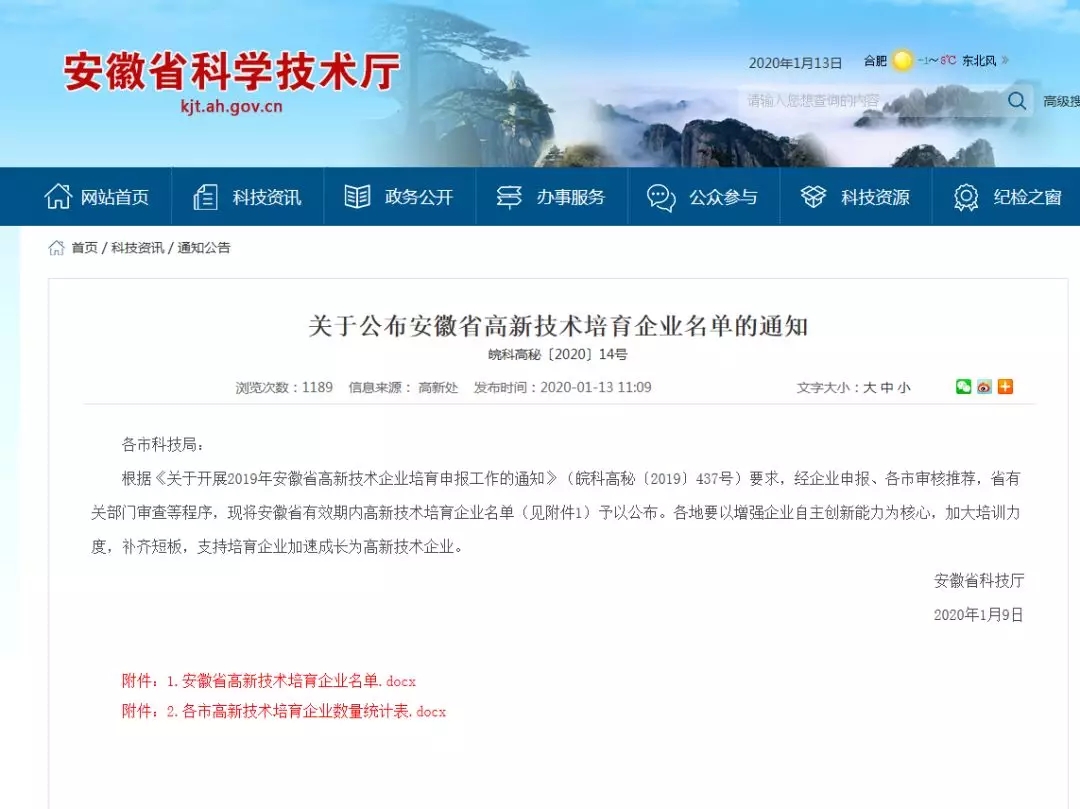 近日,安徽省科技廳公布了2019年度安徽省高新技術(shù)培育企業(yè)名單。據(jù)安徽省科技廳官網(wǎng)消息,2019年度安徽省高新技術(shù)培育企業(yè)經(jīng)過(guò)過(guò)了企業(yè)申報(bào)、各市審核推薦,省有關(guān)部門(mén)審查等程序,全省16個(gè)市共有1417家企業(yè)上榜。心里程控股集團(tuán)旗下兩家子公司——安徽心里程科技有限公司、蚌埠心里程電子科技有限公司位列其中,這是心里程集團(tuán)在安徽投資發(fā)展史上的又一喜事和盛事。