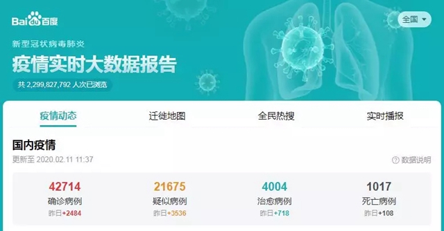 新型冠狀病毒感染肺炎疫情,牽動(dòng)著全國(guó)人民的心。1月27日,習(xí)主席作出重要指示,要求各級(jí)黨組織和廣大黨員干部團(tuán)結(jié)帶領(lǐng)廣大人民群眾堅(jiān)決貫徹落實(shí)黨中央決策部署,緊緊依靠人民群眾堅(jiān)決打贏疫情防控阻擊戰(zhàn)。雖然全國(guó)人民都已經(jīng)發(fā)動(dòng)起來,積極參與到疫情防控中。但百度“疫情實(shí)時(shí)大數(shù)據(jù)報(bào)告”上不斷增長(zhǎng)的疫情動(dòng)態(tài)數(shù)據(jù)顯示,當(dāng)前的疫情防控形勢(shì)依然十分嚴(yán)峻。截至2020年2月11日11:37,全國(guó)確診病例達(dá)到42714人,疑似病例21675人,治愈病例4004人,死亡病例1017人。