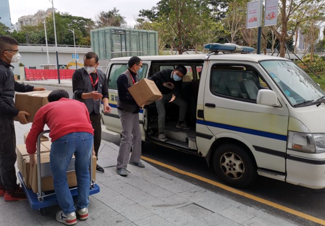 深圳市婦幼保健醫(yī)院派車于心里程控股集團(tuán)總部接收3萬余件捐贈(zèng)物資