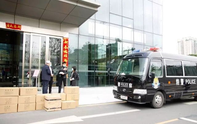 肇慶市派車于心里程控股集團(tuán)總部接收6萬余件醫(yī)用物品捐贈(zèng)