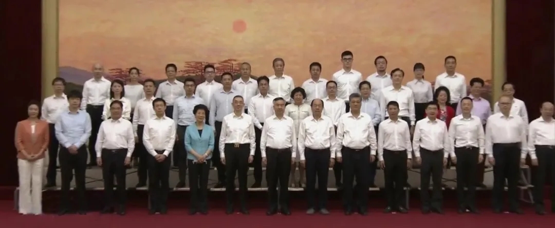省委書記李希(前排左七)、省長(zhǎng)馬興瑞(前排左九)、省人大常委會(huì)主任李玉妹(前排左五)、